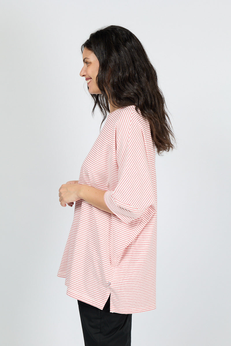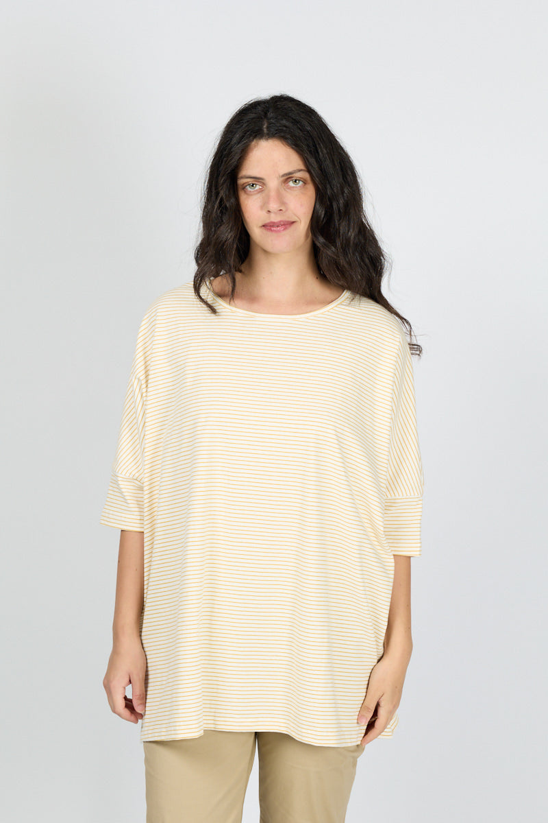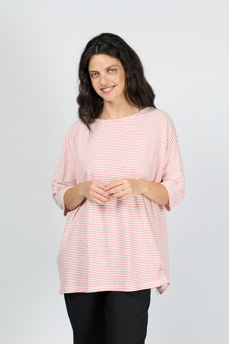 מחיר מקורי ₪ 99תיאור הפריט: חולצת אוברסייז, מבד כותנה פסים בגזרת עטלף רחבה