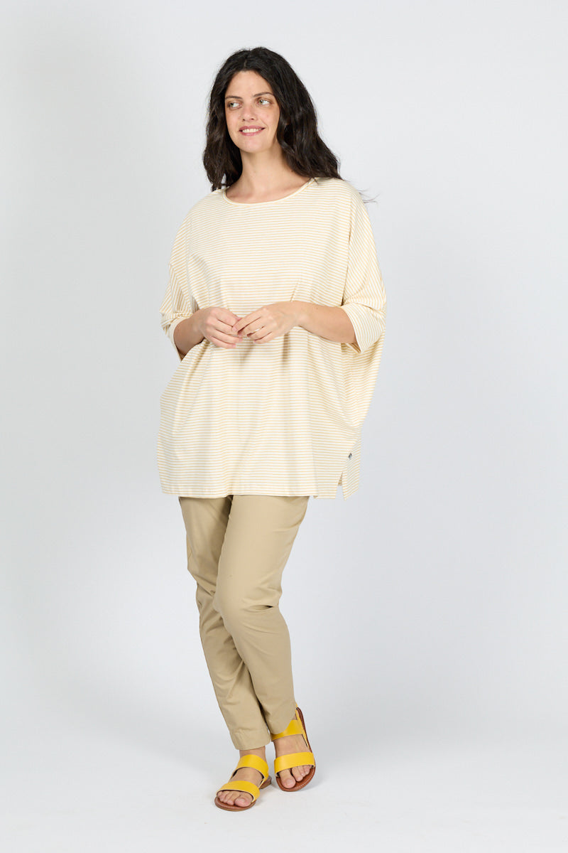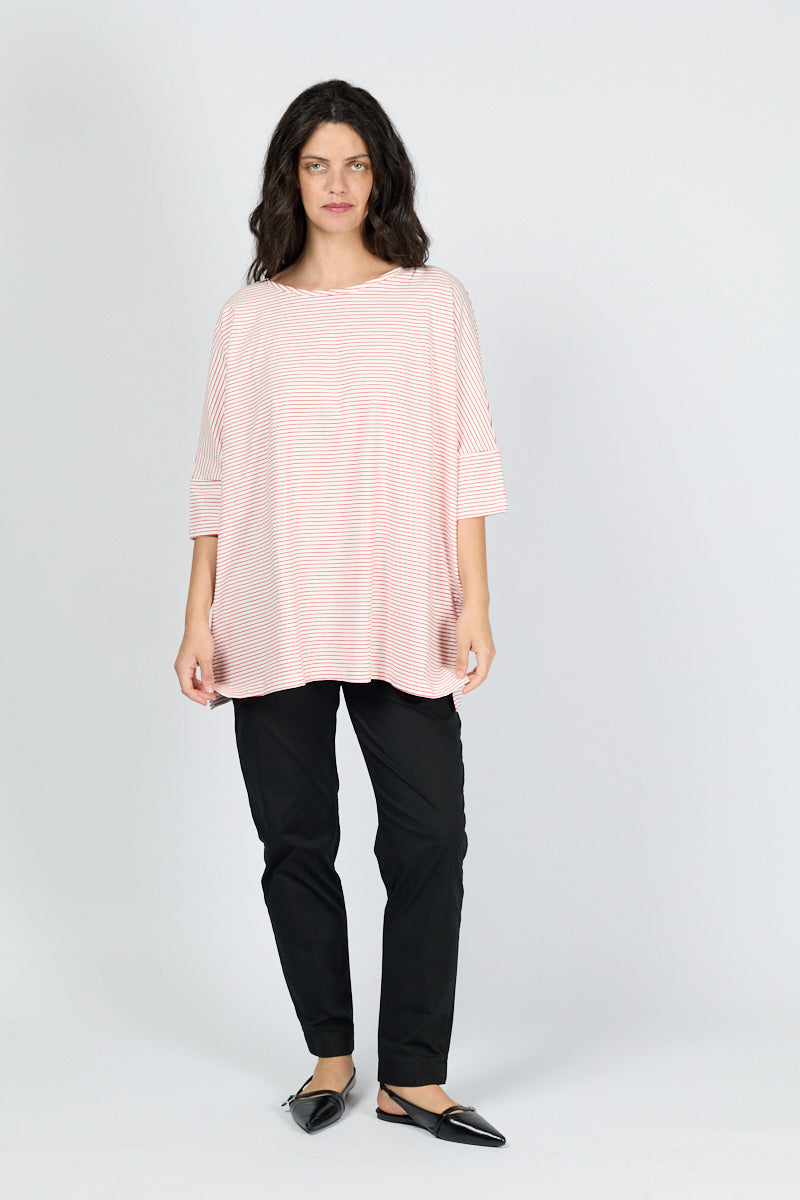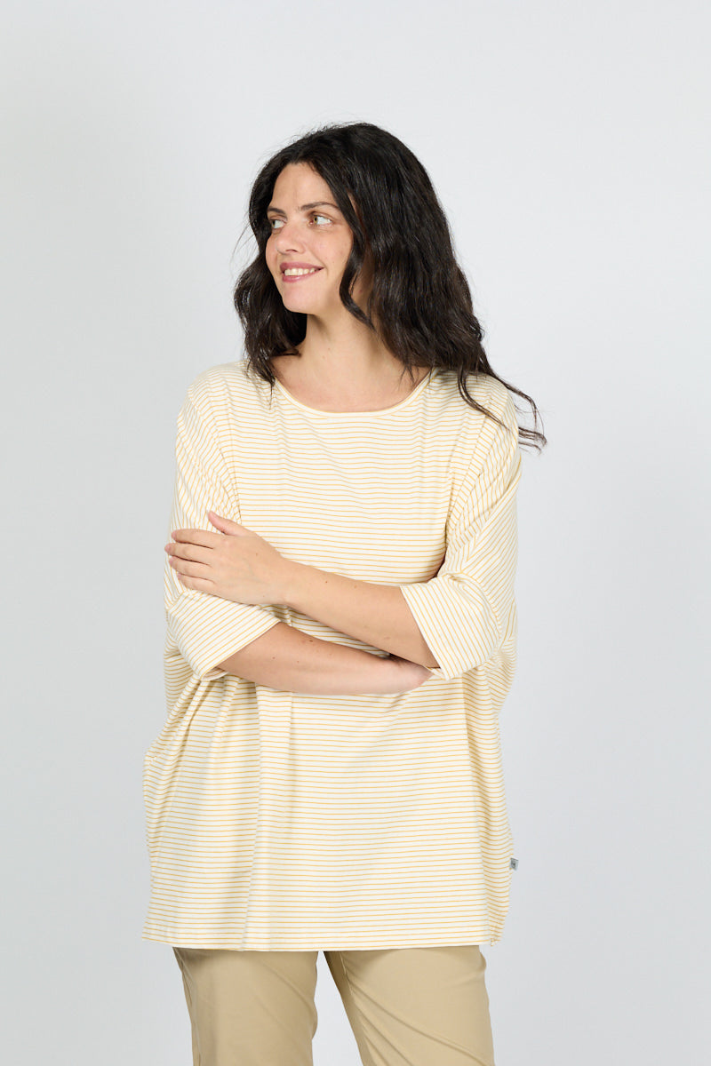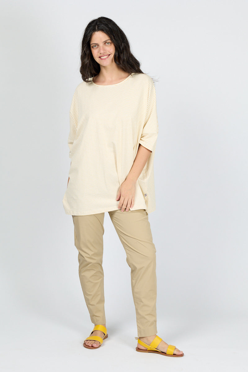 מחיר מקורי ₪ 99תיאור הפריט: חולצת אוברסייז, מבד כותנה פסים בגזרת עטלף רחבה